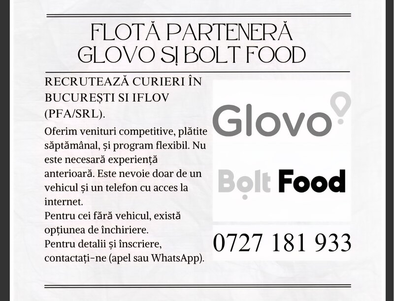 angajeaza curieri COR 962101- 60 locuri disponibile. Engleza reprezinta un avantaj. Se lucreaza pe teren, in Bucuresti si Ilfov; 4.050 L.