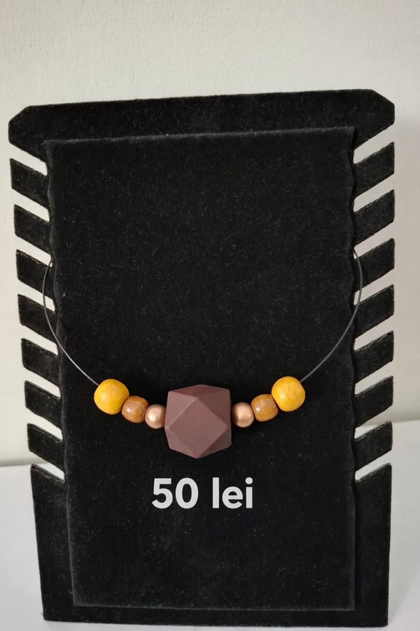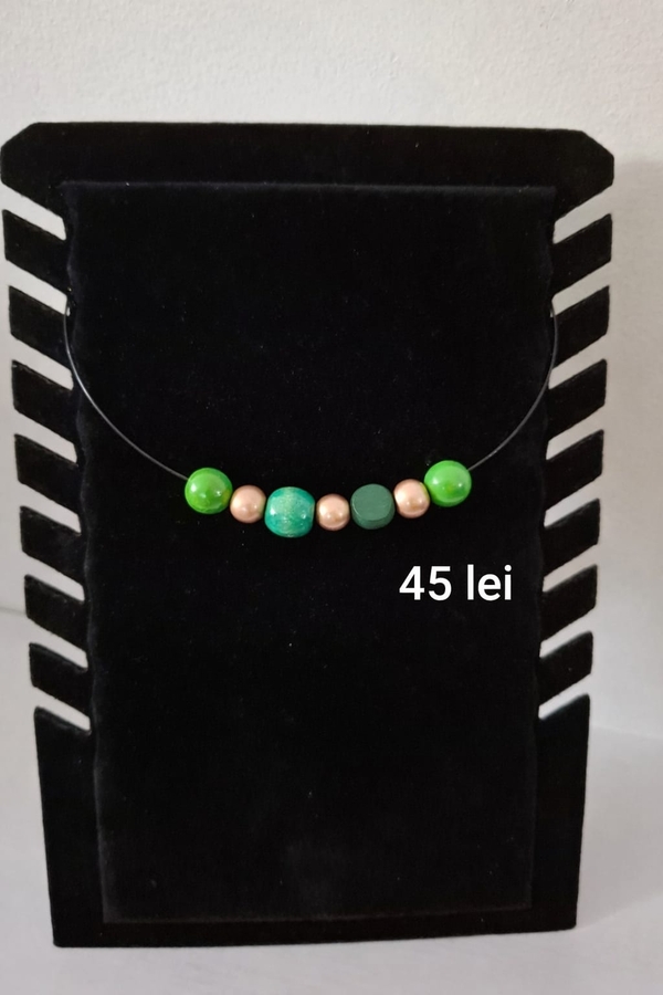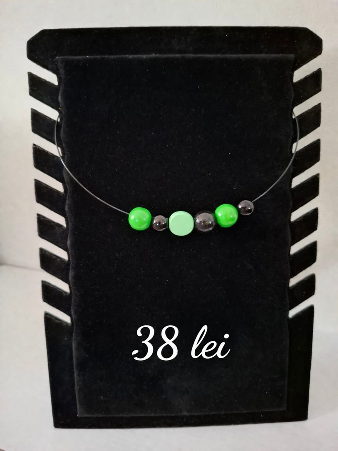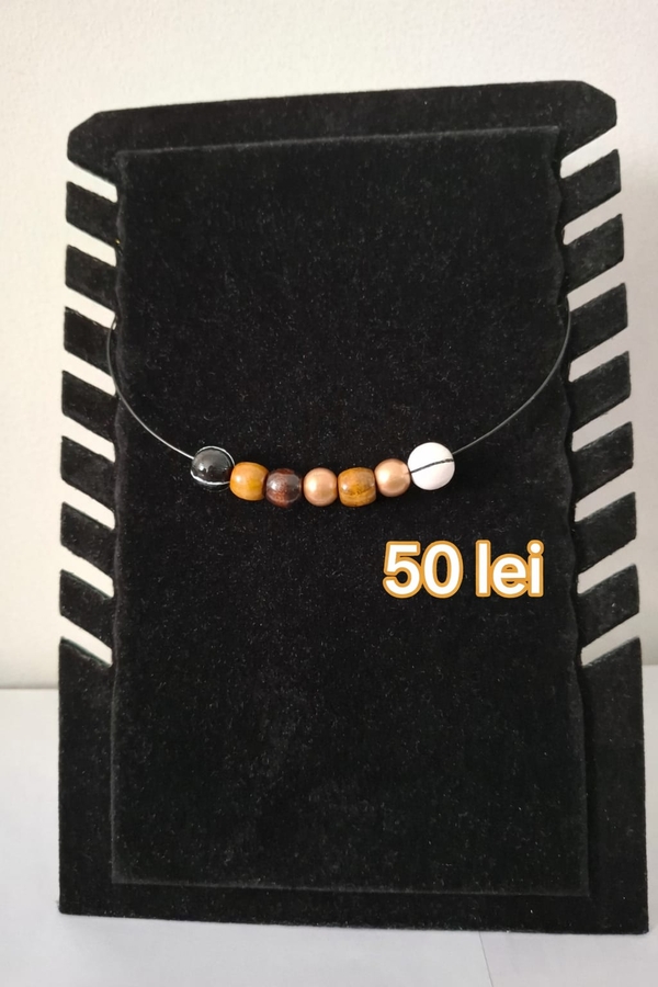 Coliere handmade moderne, realizate pe cablu metalic din otel inoxidabil cu inchidere sigura pe baza magnetica.