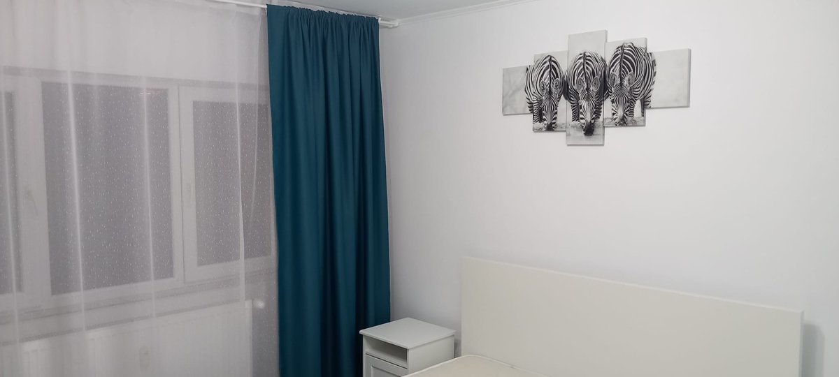- Dormitor: pat matrimonial, dressing spatios cu usi glisante