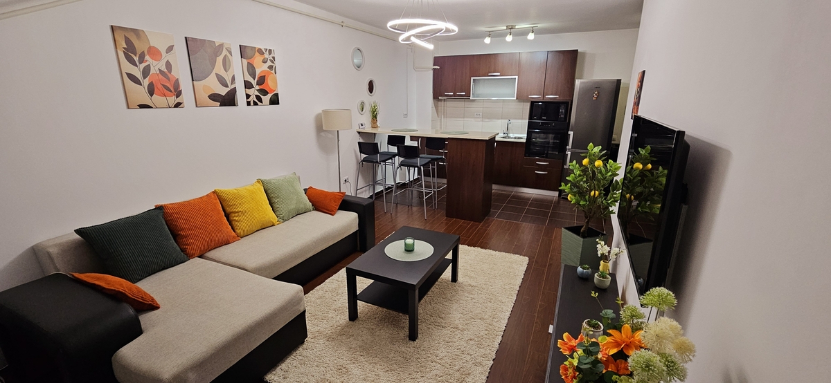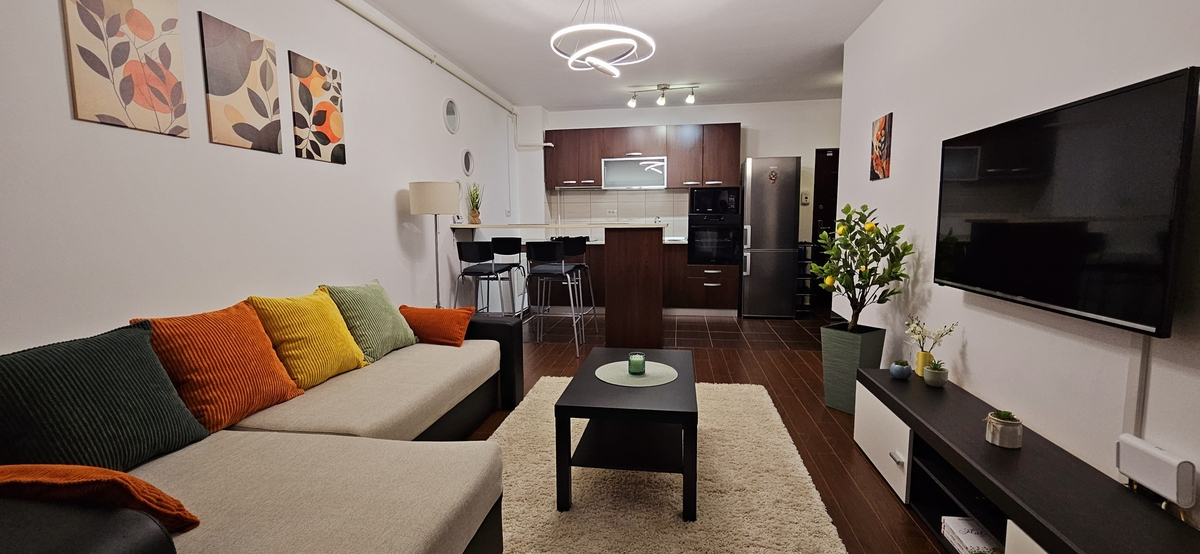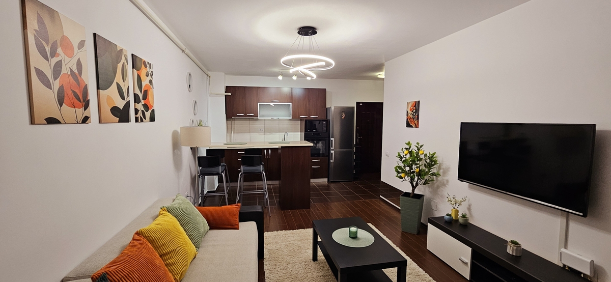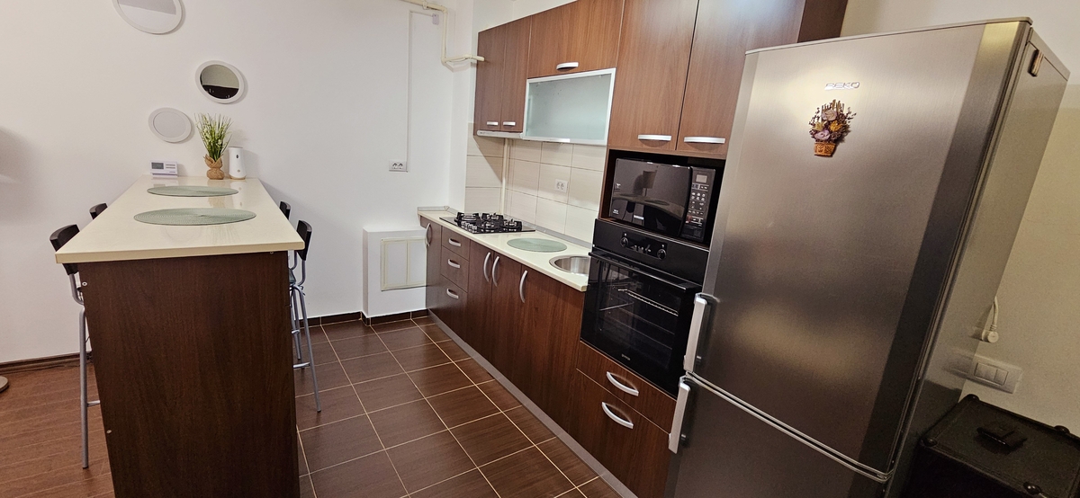 proprietar (prima inchiriere), 50 mp, mobilat si utilat (masina de spalat, uscator de rufe), centrala, parchet, aer conditionat, termopan, parcare cu bariera, etaj 9, cu 2 lifturi, langa Auchan, STB.