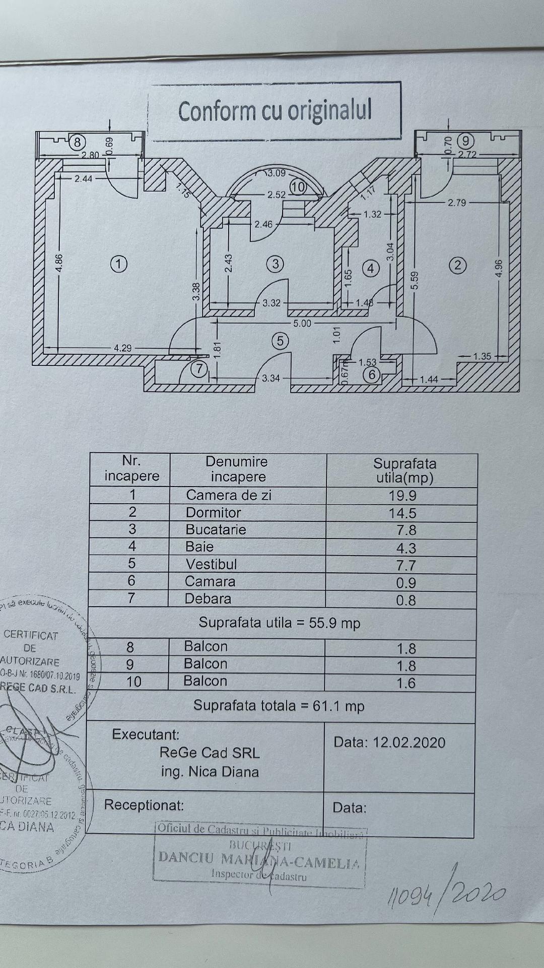 Suprafata totala: 61,1 mp