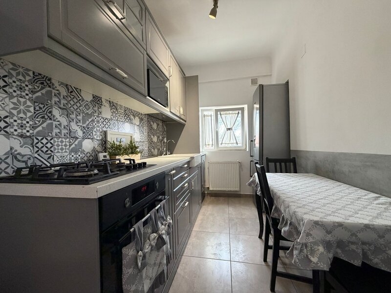 In prezent, apartamentul este partial mobilat. Bucataria este complet mobilata si utilata, iar restul spatiilor sunt amenajate conform fotografiilor din anunt. In functie de preferintele viitorului chirias, proprietarul poate completa mobilierul sau ajusta amenajarea existenta, pentru a se adapta nevoilor acestuia.