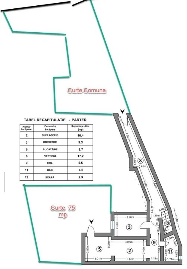 Din bucatarie se face accesul in curtea care poate fi folosita de catre chirias.