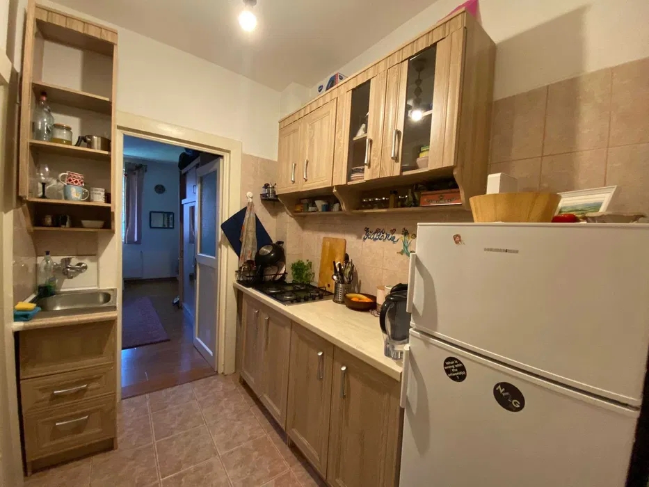 Situata la etajul 1 dintr-un bloc P+1 construit in 1966, locuinta beneficiaza de linistea unui imobil mic, fara aglomeratia blocurilor turn — vecini putini, scari curate, atmosfera de cartier.