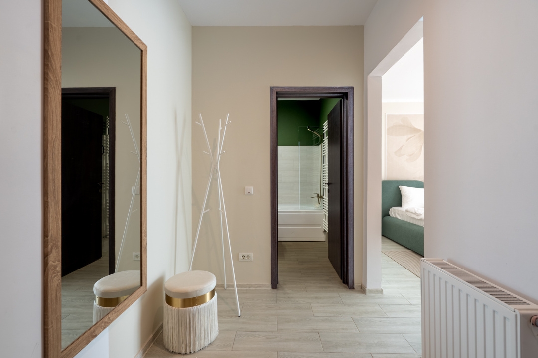Va prezint o garsoniera - la prima închiriere. Mobilata si utilata complet, proiect facut de designer, foarte bine gandit pentru a imbina confortul cu utilul.