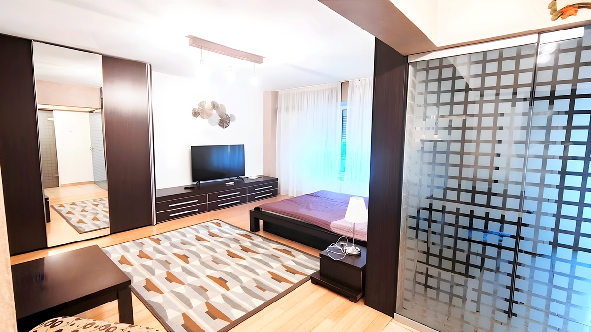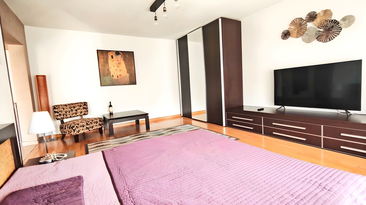 Unirii - Matei Basarab, 1/8, garsoniera decomandata, sptioasa (40mp) si luminoasa, vedere spate, bloc mixt, proaspat renovata, toate imbunatatirile, ac, termopan, mobilata modern, bucatarie mobilata si utilata, electrocasnice (aragaz, cuptor, cuptor microunde, baie cu cada, dressing generos, TV.