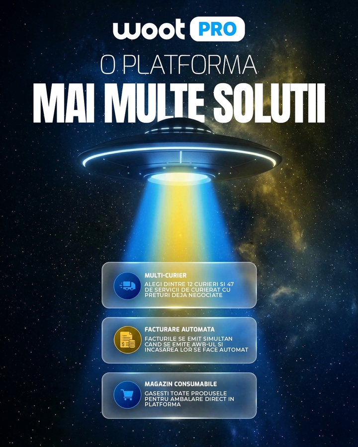 woot.ro este un agregator de curierat din Romania, lansat in 2020 cu o misiune clara: sa simplifice si sa digitalizeze logistica expedierilor. Platforma reuneste cei mai importanti curieri din tara -- FAN Courier, Sameday, Cargus, DPD, GLS, DHL, UPS, Posta Romana si altii -- intr-un singur loc, unde oricine poate compara preturile in timp real si expedia un colet in cateva minute, de pe orice dispozitiv.