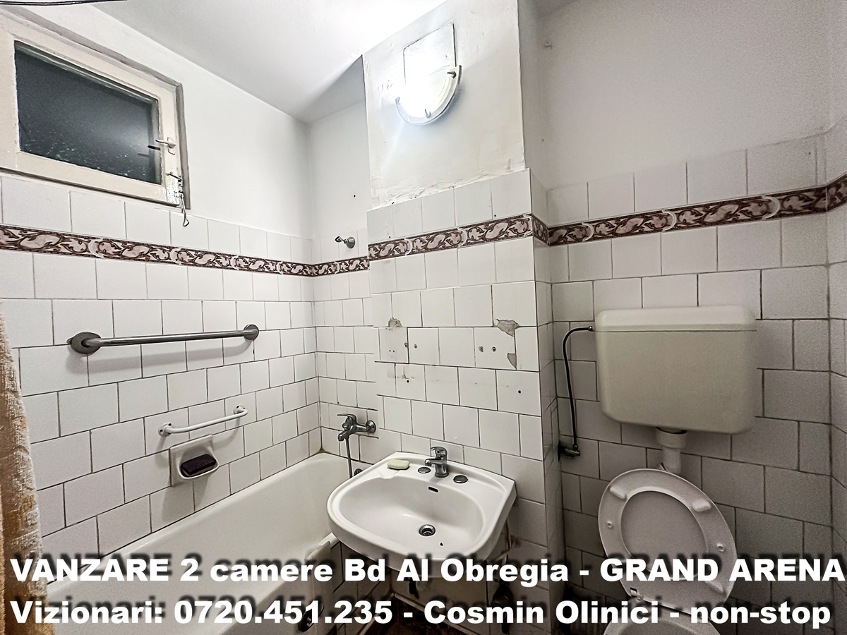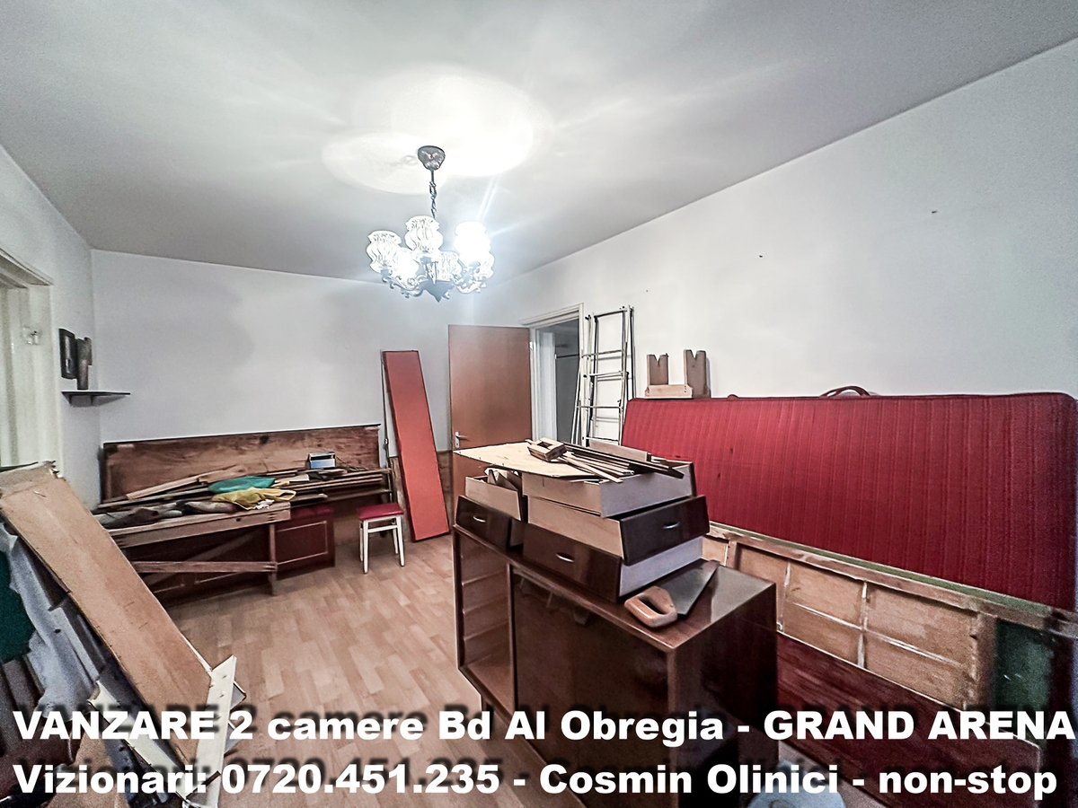 Galaxy Imob va propune spre vanzare un apartament de 2 camere situat pe Bd Obregia, intr-o zona foarte cautata din sectorul 4, la doar cateva minute de Grand Arena Mall. Locuinta se afla la etajul 2 al imobilului si are o suprafata utila de 45 mp, iar suprafata totala inclusiv balcon este de aproximativ 50 mp, oferind un spatiu eficient pentru locuire sau investitie.