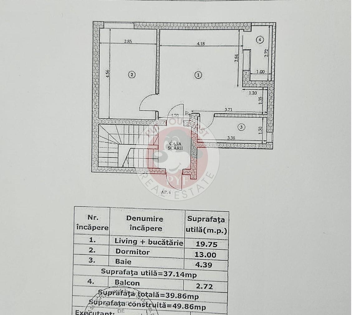 Suprafata totala: 39.86 mp