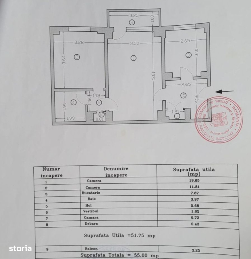 Suprafata utila: 51,75 mp