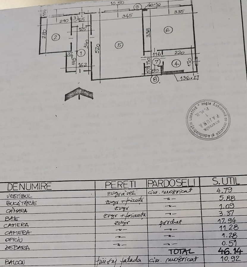 Optiuni interior: Aer conditionat Apometre Balcon Debara Izolatie termica Repartitoare caldura Termopan Usa metalica