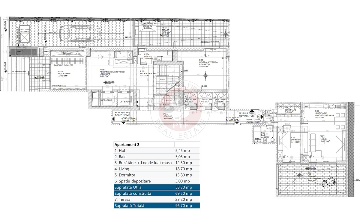Suprafata totala: 96.7 mp