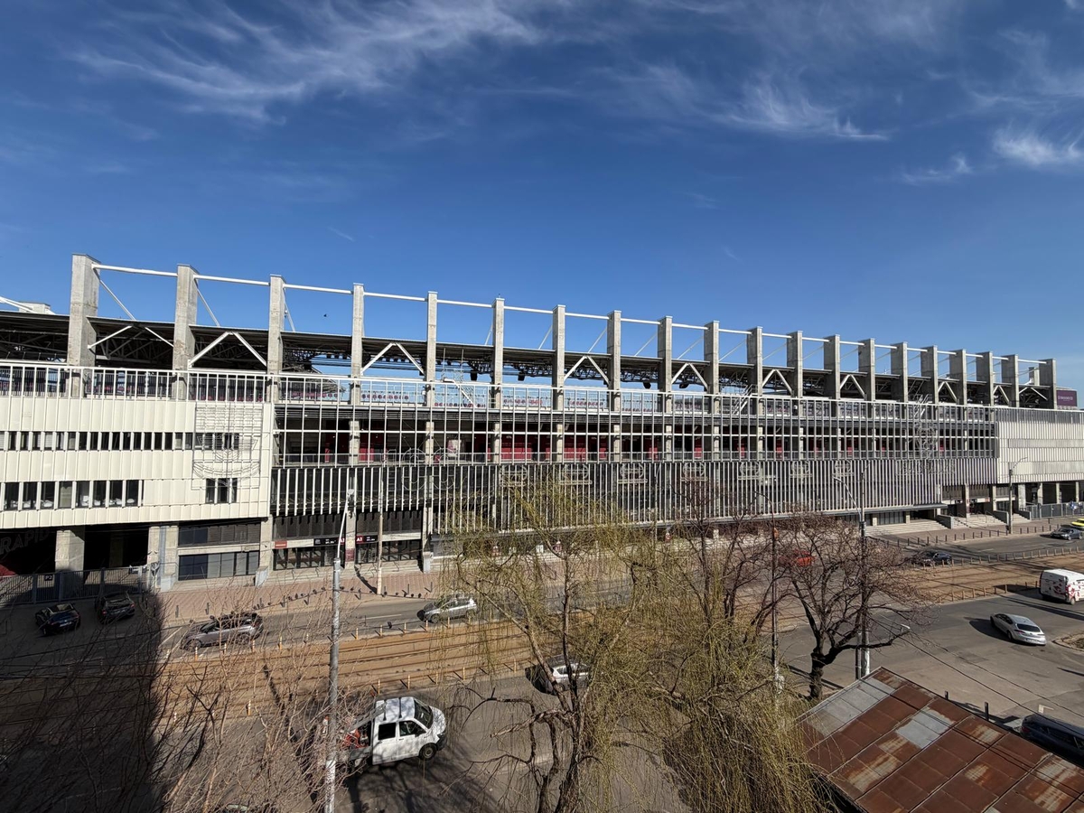 Ajungi la stadion in aproximativ 10 secunde. Blocul este lipit de stadion.