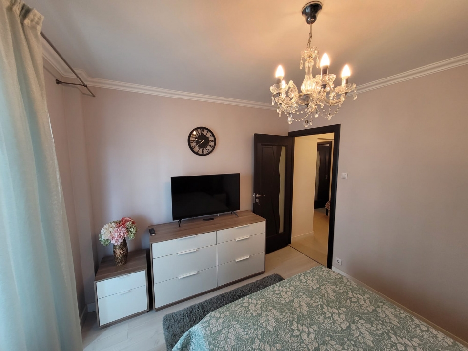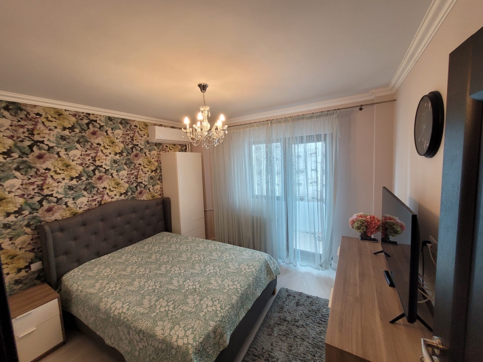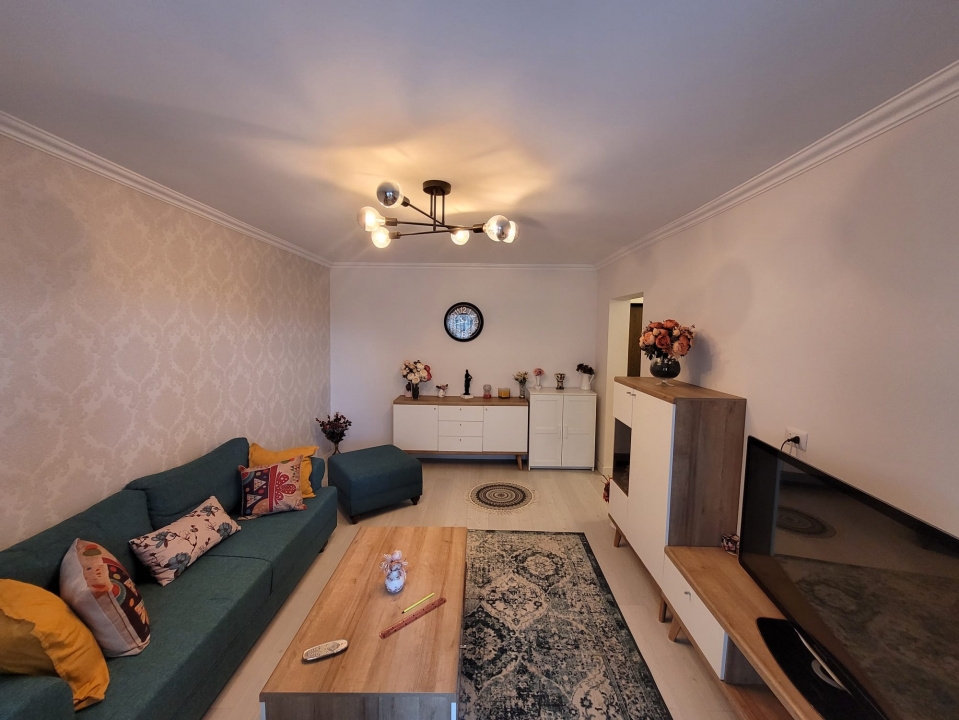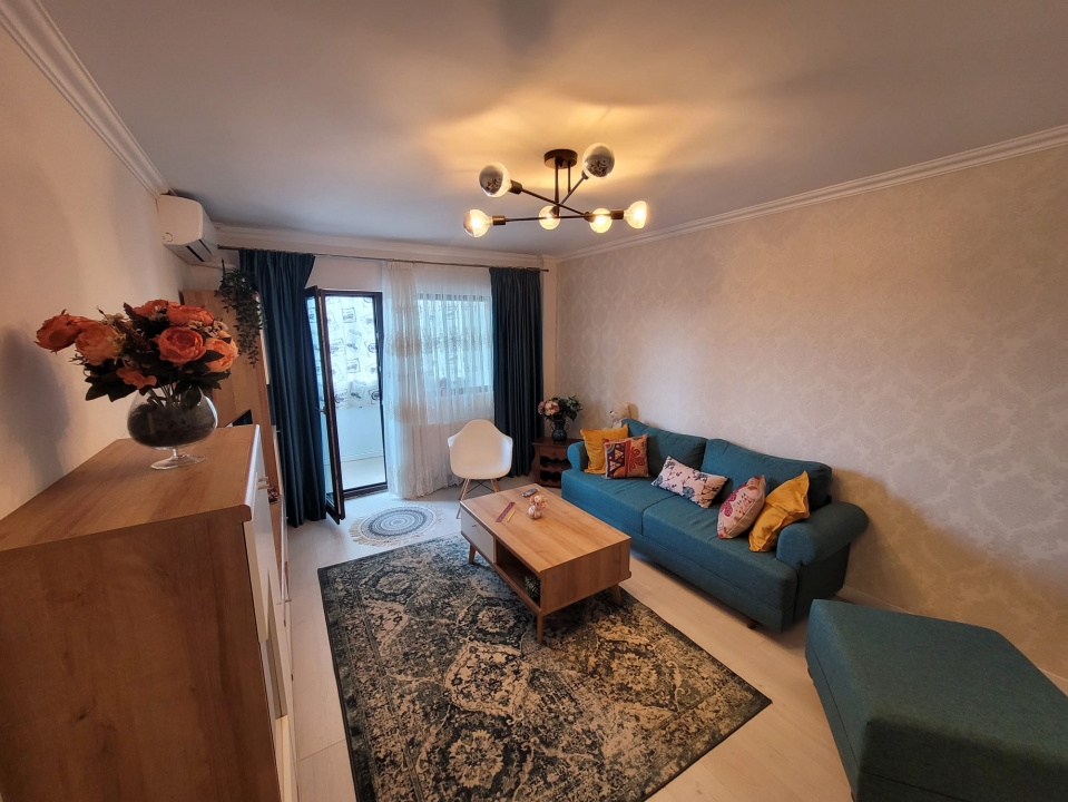 Apartamentul este amplasat intr-un bloc reabilitat termic si este orientat spre Vest( vedere asupra bazei sportive Voinicelu). Apartamentul a fost amenajat in anul 2022 si beneficiaza de finisaje moderne si mobilier adaptat spatiului.Suprafata generoasa a celor 2 balcoane asigura extinderea spatiului util. Apartamentul se poate vinde mobilat si utilat conform foto.Comision agentie cumparator : standard