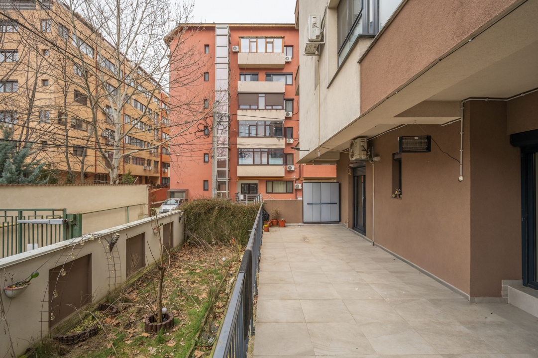 Apartamentul este situat intr-un imobil tip Boutique cu regim mic de inaltime, s+p+3+4r, imobil finalizat in anul 2017. Imobilul are 2 scari si beneficiaza de lift. Apartamentul se afla la parterul imobilului si beneficiaza de o terasa generoasa si gradina proprie.