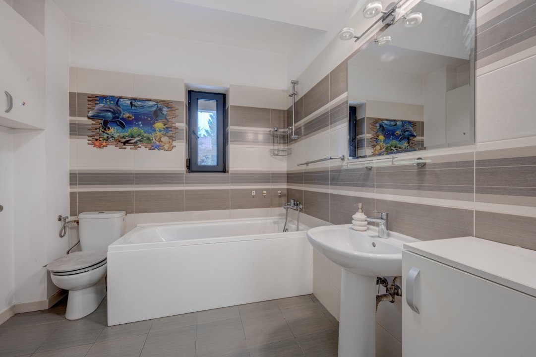 Incalzirea se realizeaza prin centrala termica proprie iar pentru racire este instalat una aparat de aer conditionat. Pardoselile sunt placate cu gresie in zonele de hol, living, bucatarie, bai, terasa si parchet din lemn in dormitoare. Toate utilitatile sunt contorizate individual, existand contoare atat pentru apa, gaze si electricitate.