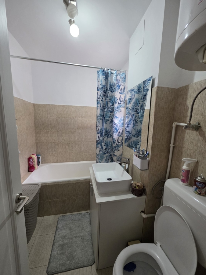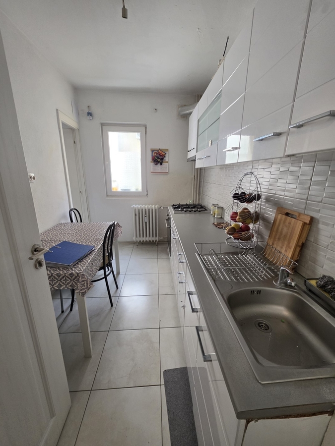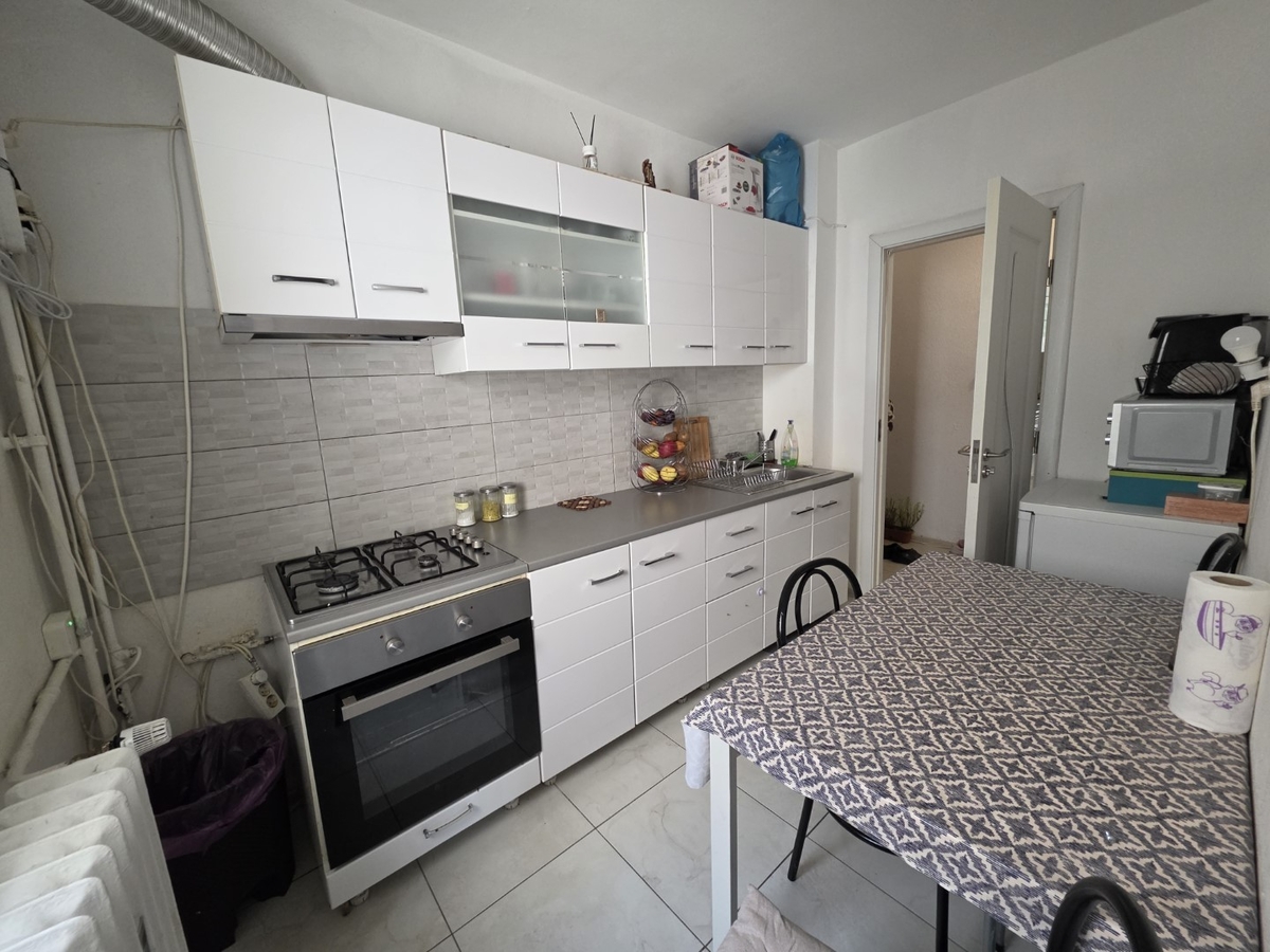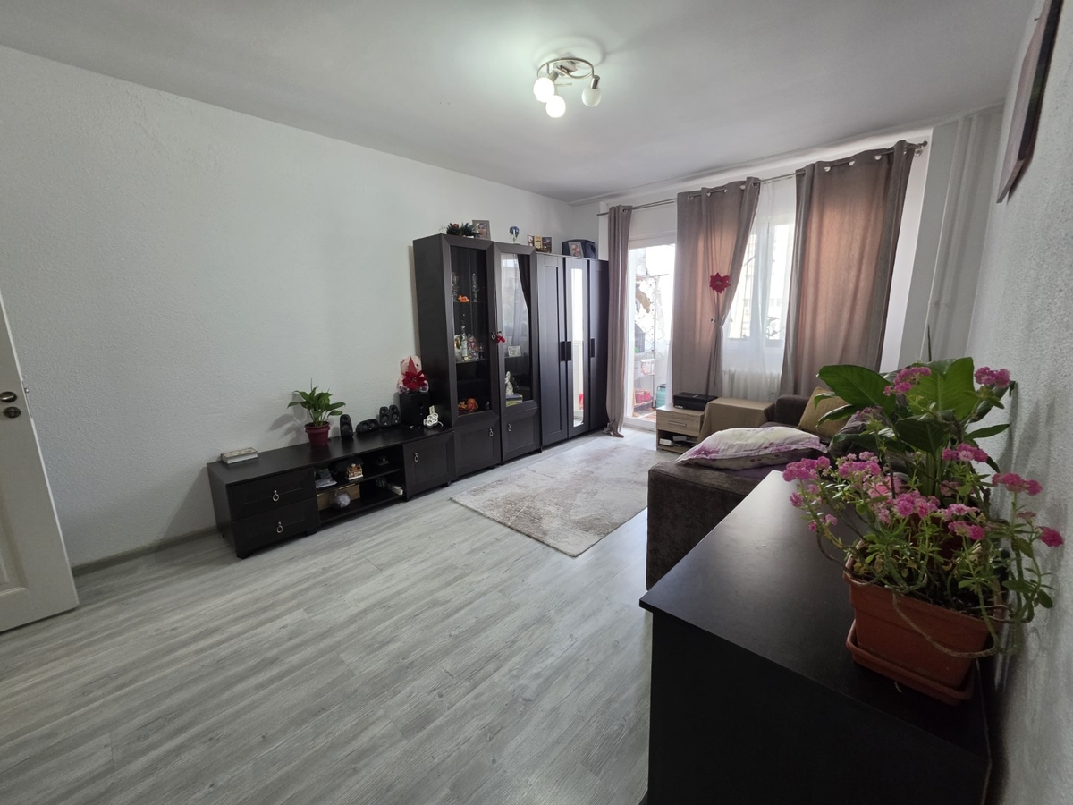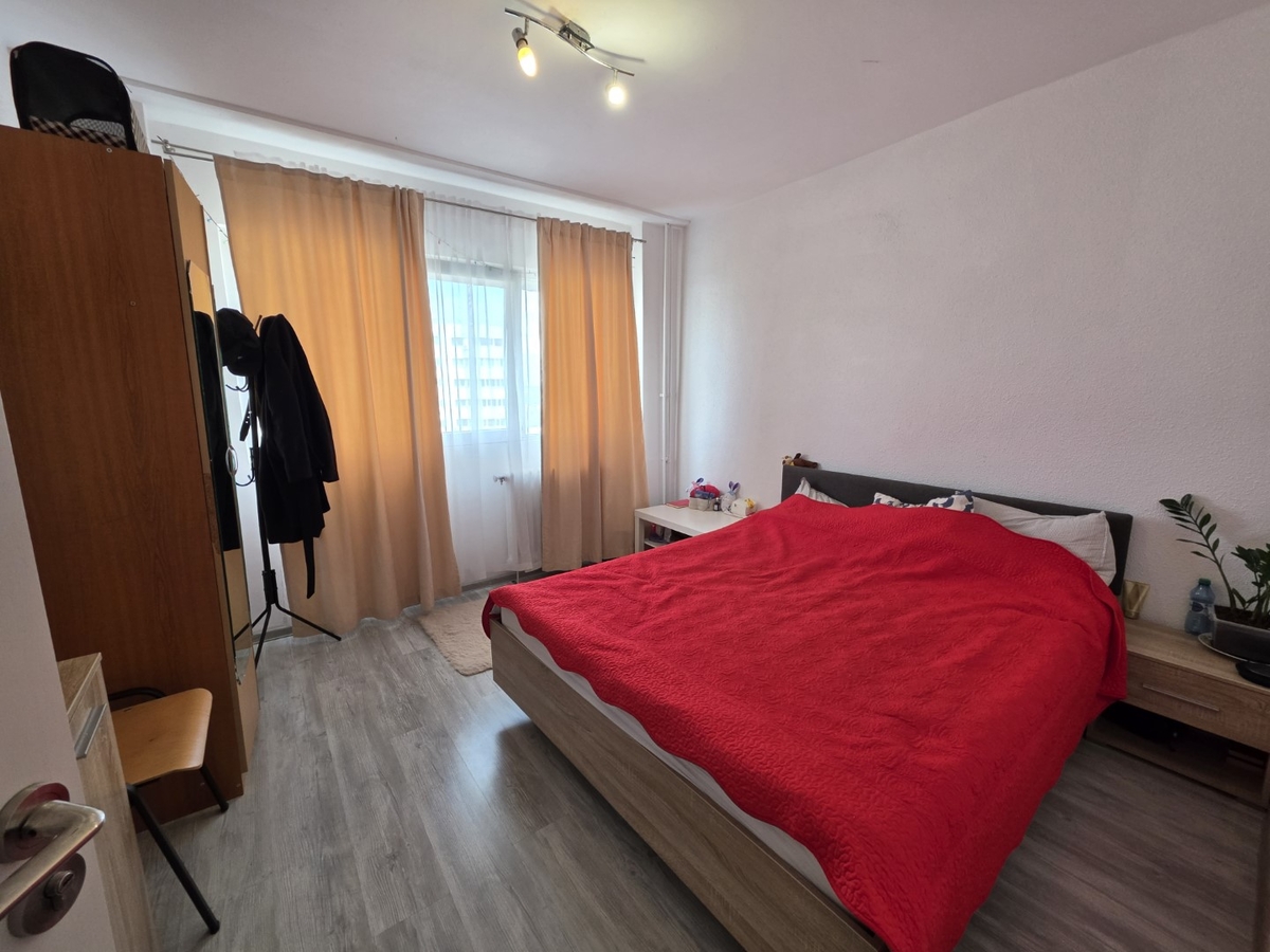 Apartamentul este circular, mobilat si utilat, are gresie, faianta, parchet, termopane, geam la baie.