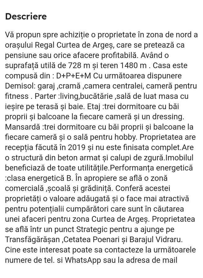 Suprafata utila 728 mp
