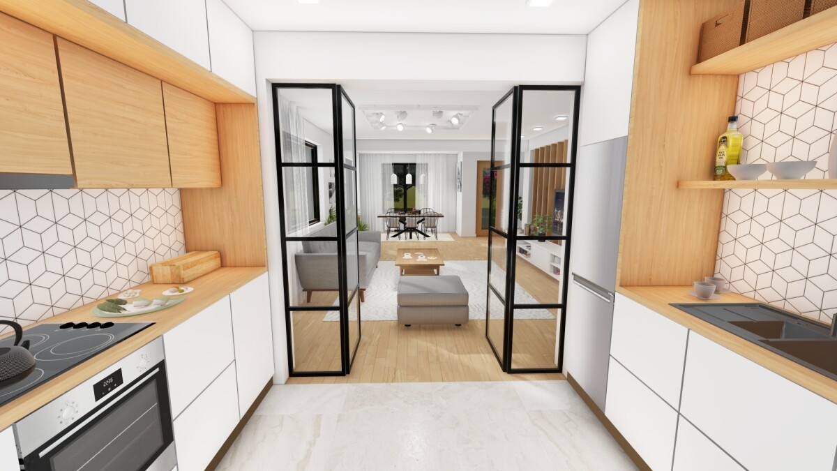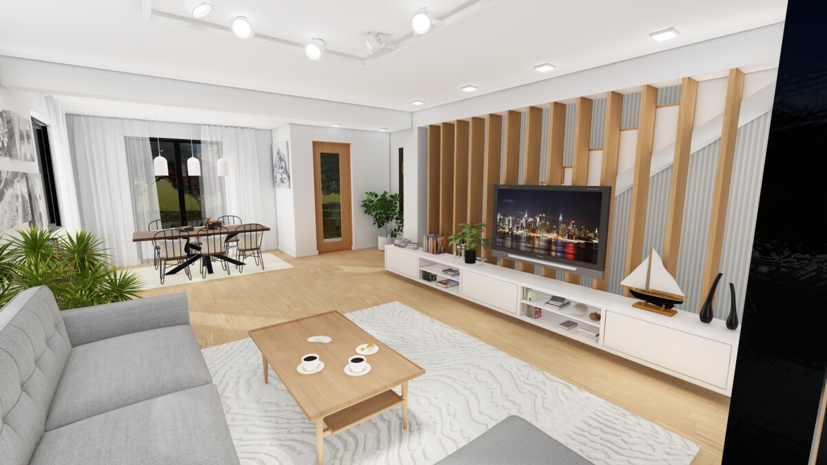 Parterul include zona de zi, cu living generos si zona de dining, bucatarie separata, baie si hol de acces.