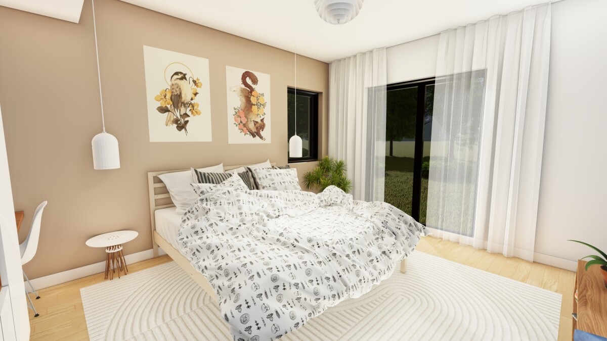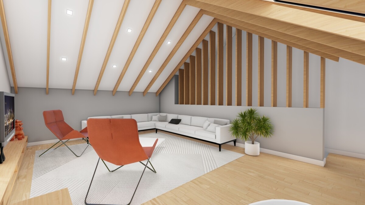 Mansarda este configurata ca suita matrimoniala, cu dormitor, dressing, baie proprie si spatiu tehnic. In functie de preferintele viitorilor proprietar, mansarda poate fi extinsa pentru amenajarea unui al doilea dormitor, rezultand pana la cinci dormitoare.