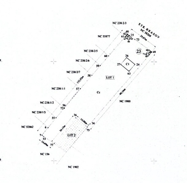 Deschiderea de la Str Brasov este de 30 m, cea dinspre lac de 15 m. Lungimea terenului este de 130 mp.