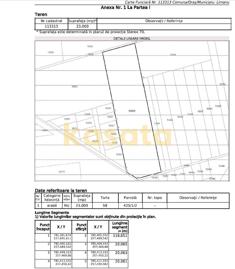 Terenul beneficiaza de deschidere de aproximativ 21 ml la ambele capete, la doua drumuri de pamant, asigurand acces facil pentru utilaje agricole. Parcela are o lungime de aproximativ 119 m, forma usor neregulata, ideala pentru exploatare agricola eficienta.