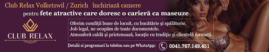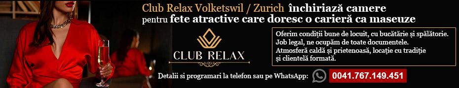 Club Relax Volketswil / Zurich inchiriaza camere pentru fete atractive care doresc o cariera ca maseuze. Oferim conditii foarte bune de locuit, cu bucatarie complet utilata si spalatorie. Job legal –...